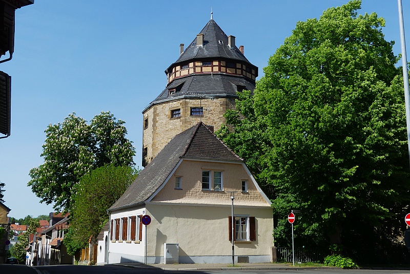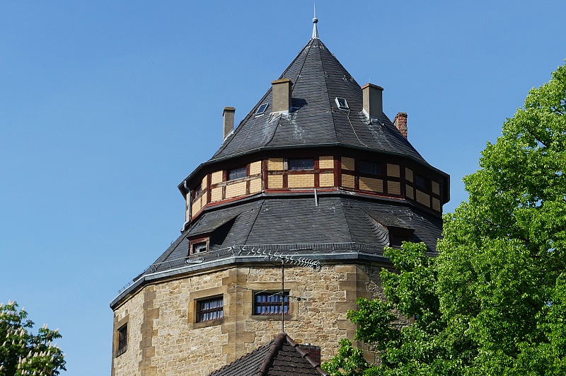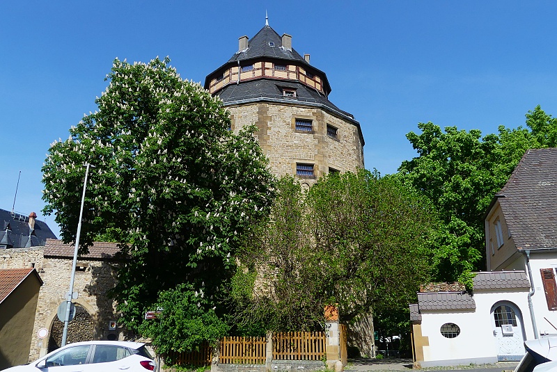 02.05.2025: Eingebunden in eines der restaurierten Teilstücke der alten Stadtmauer in der Klosterstrasse steht der ebenfalls wieder hergerichtete Taubenturm: