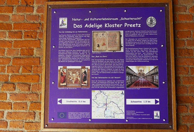 20.06.2025: Das Kloster Preetz wurde 1211 oder 1212 unter dänischer Herrschaft in Holstein als ein Benediktinerinnenkloster gegründet. In den ersten Jahren nach der Gründung erlebte der Konvent mehrfach einen Ortswechsel, bis er 1261 in Preetz seinen endgültigen Sitz fand. Der Klosterbereich war von den Bächen Mühlenau und Schwentine sowie von einem künstlich angelegten Graben umschlossen und dadurch gesichert. Neben den Wohngebäuden und der Klosterkirche verfügte das Kloster über einen Wirtschaftshof mit Scheunen, Kuh-, Pferde- und Schafställen, einer Wassermühle und zahlreichen Nebengebäuden. Diese Wirtschaftseinrichtungen bestanden bis zur Vernichtung des Wirtschaftshofes durch Brandstiftung im Jahr 1959. Im Zuge der Reformation wurde 1542 das Kloster in ein adliges Damenstift der Schleswig-Holsteinischen Ritterschaft umgewandelt, das seitdem in dieser Form besteht. Für die Nonnen, die das Kloster verliessen, wie auch die adligen Damen, die in das Stift eintraten, wurden mehrere Häuser auf dem Klostergelände in lockerer Bebauung errichtet. Bis ins 20. Jahrhundert kamen weitere Häuser hinzu. Zum Kloster gehört ein ausgedehntes Waldgebiet in Pohnsdorf nahe Kiel, der Klosterforst Preetz. Die gesamte Region zwischen Ostsee, Passader See und Selenter See wird bis heute Probstei genannt, weil sie jahrhundertelang vom Preetzer Klosterprobst verwaltet wurde und bis heute vom Amt Probstei. Die Gesamtanlage des Klosters sowie sämtliche Klostergebäude stehen unter Denkmalschutz.