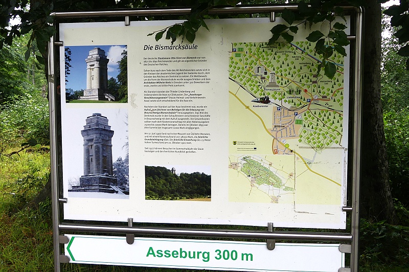 25.07.2025: Besuch Bismarckturm Wittmar im Landkreis Wolfenbüttel (Höhe: 24 m, Einweihung: 1901). Der Turm hat einen quadratischen Grundriss und eine Befeuerungsmöglichkeit. Der Turm wurde zu Ehren des Reichskanzlers Otto von Bismarck errichtet. Die Studentenschaft der Herzoglich Technischen Hochschule Carola-Wilhelmina in Braunschweig regte auf dem Vertretertag in Hamburg im Dezember 1898 an, Otto von Bismarck ein Denkmal zu erbauen. Ein Ausschuss sprach sich für den Bau einer Bismarcksäule nach dem preisgekrönten Typenentwurf Götterdämmerung des Architekten Wilhelm Kreis aus. Nach dem Zweiten Weltkrieg ging der Bismarckturm in das Eigentum des Landes Niedersachsen über. Erst im Jahr 1977 wurde ein Vertrag mit dem Heimat- und Verkehrsverein Asse e. V. geschlossen, der Nutzung, Betreuung und Reinigung regelte: