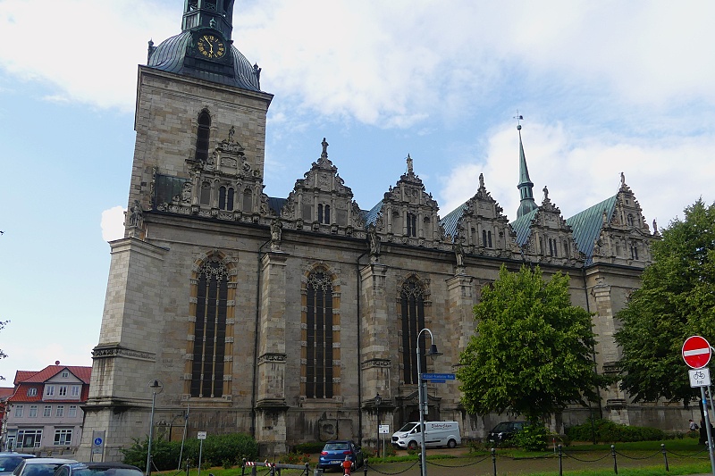 25.07.2025: Die Hauptkirche Beatae Mariae Virginis zu Wolfenbüttel ist der erste bedeutende protestantische Grosskirchenbau der Welt. Der Name der Kirche bedeutet Der seligen Jungfrau Maria und für dieses erste gross gedachte Kirchengebäude des Protestantismus gab es in der Geschichte keinerlei Vorbilder. Herzog Heinrich Julius, Wegbereiter der Reformation in Wolfenbüttel, gab den Bau der Kirche in Auftrag, 1608 begann der herzogliche Baumeisters Paul Francke mit der Errichtung. Die Vorgaben waren komplex, einerseits sollte der Bau als Gotteshaus für Predigten und das Abendmahl genutzt werden können, andererseits sollte er die Pracht und Macht der Fürsten repräsentieren sowie als Grablege für die fürstliche Familie dienen. So verschieden wie die erwünschten Zwecke sind auch die Elemente, die in den Bau mit einflossen, charakteristische Züge aus Gotik, Renaissance und Barock verschmelzen unter dem Oberbegriff Manierismus zu einem prachtvollen Bauwerk. Im Inneren fasziniert Beatae Mariae Virginis Gläubige und Kunstinteressierte mit dem aus Holz geschnitzten Hochaltar des Freiberger Bildschnitzers Bernhard Ditterich, der bildlichen Darstellung der Passionsgeschichte sowie der reich verzierten Orgel mit ihrem eindrucksvollen Orgelwerk mit 53 Registern: