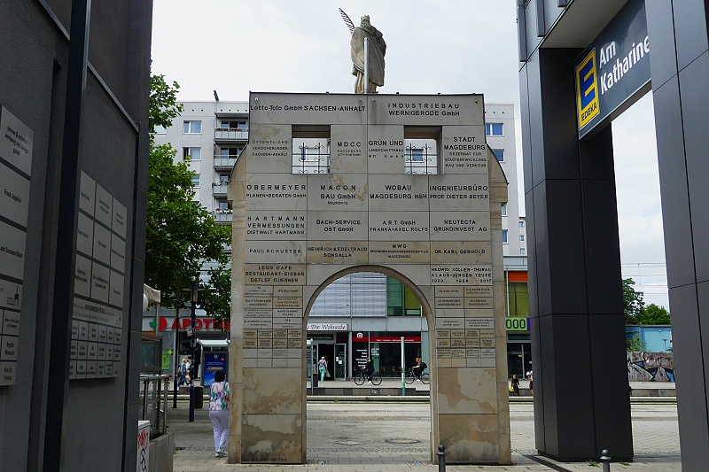 26.07.2025: Das erhaltene Eingangsportal der Katharinenkirche wurde nach umfangreicher Restaurierung wieder in unmittelbarer Nähe seines historischen Standortes wiedererrichtet. Gemäss aller Planungen ziert es den Durchgang zwischen Katharinenturm und dem benachbarten Wohnhaus. Es macht diesen Ort zu einer Stätte der Erinnerung und verleiht dem Breiten Weg eine weitere bedeutungsvolle Schattierung. In einer grossen Festveranstaltung am 29.10. 2016 wurde mit Enthüllung der Heiligen Katharina das Portal offiziell übergeben. Gut 300 Magdeburger liessen sich diesen Moment nicht entgehen: