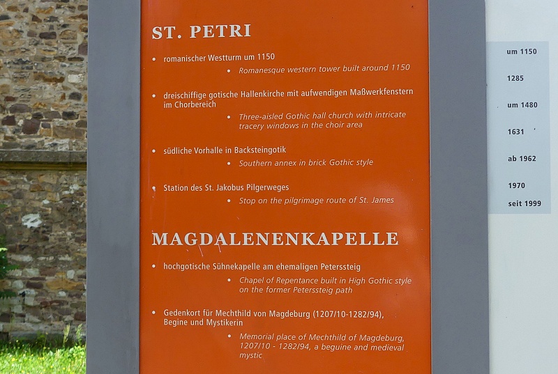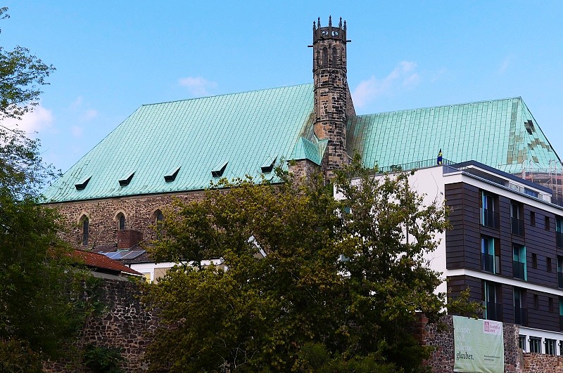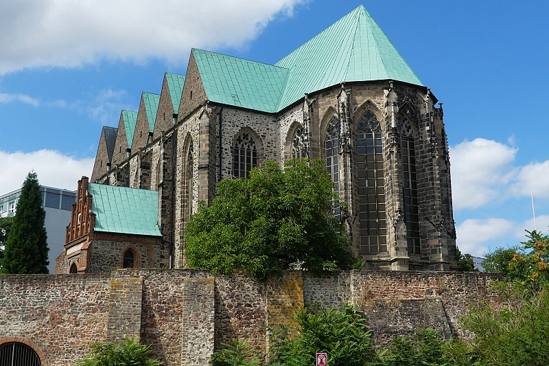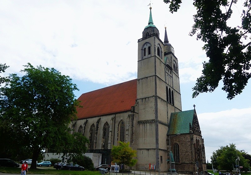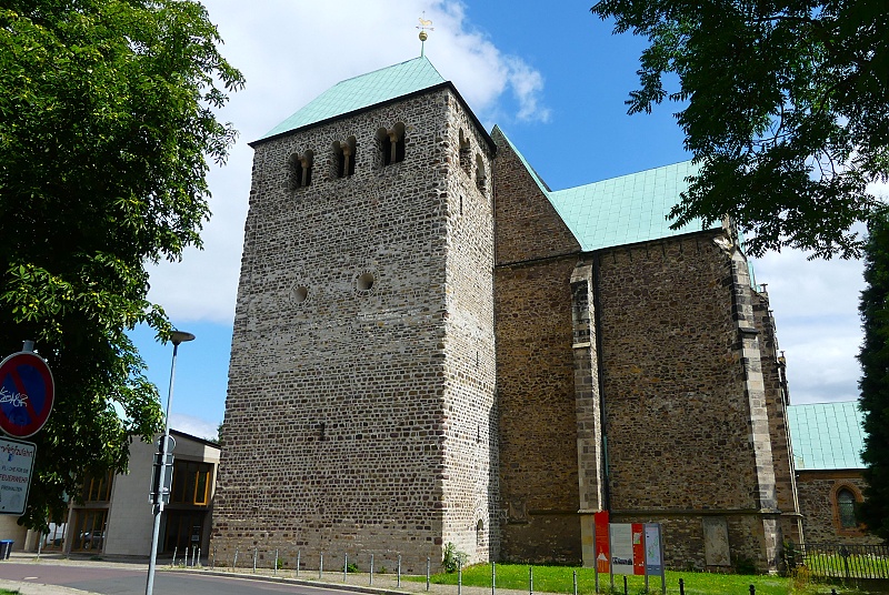 26.07.2025: Bis ins 14. Jahrhundert erstreckte sich am Ufer der Elbe nördlich und ausserhalb der damaligen Stadt Magdeburg das Fischerdorf Frose. Seine Pfarrkirche war seit dem 12. Jahrhundert St Petri. Das Patrozinium nimmt wohl Bezug auf die mit der Elbe verbundene Tätigkeit der Froser Bevölkerung, ist der Apostel Petrus doch der Patron von Fischern und Schiffern. 1390 erfolgte im Zuge einer Stadterweiterung Magdeburgs die Eingliederung von Frose, wonach die Kirche weitgehend neu errichtet wurde. Im Dreissigjährigen Krieg 1631 und im Zweiten Weltkrieg 1945 weitgehend zerstört, zeigt sich die Kirche heute nur im Äusseren in der alten Gestalt. Vom Gründungsbau blieb einzig der massige Westturm erhalten. Mit seinen Bruchsteinquadern bewahrte er den Charakter der einstigen wehrhaften Dorfkirchenanlage, wie man sie in der Magdeburger Umgebung bis heute noch findet. Im unteren Teil ist er ungegliedert und weist keine Öffnungen auf. 1970 durch den katholischen Bischof Johannes Braun geweiht, dient sie seither als Pfarr- und Universitätskirche: