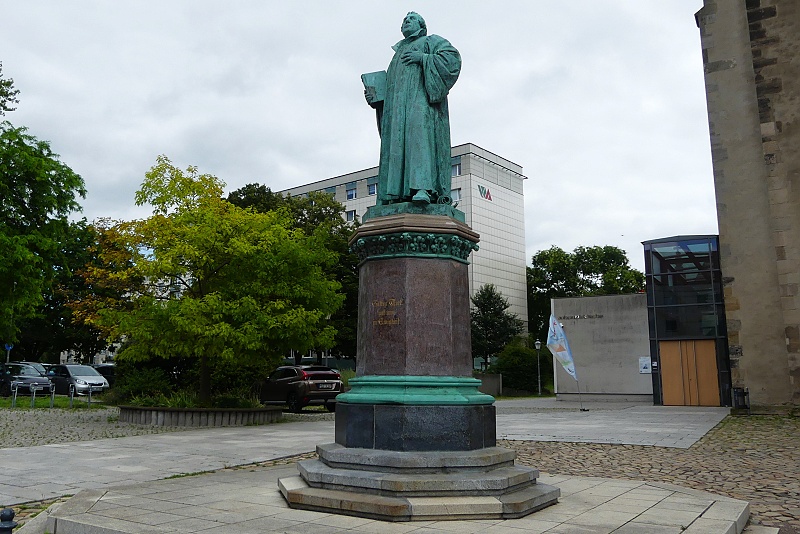 26.07.2025: Die Bronzestatue wurde 1886 von Emil Hundrieser geschaffen, um an die Predigt Martin Luthers in der nahe gelegenen Johanniskirche am 26. Juni 1524 zu erinnern. Nach dieser Predigt trat die Magdeburger Altstadt geschlossen zum Protestantismus über: