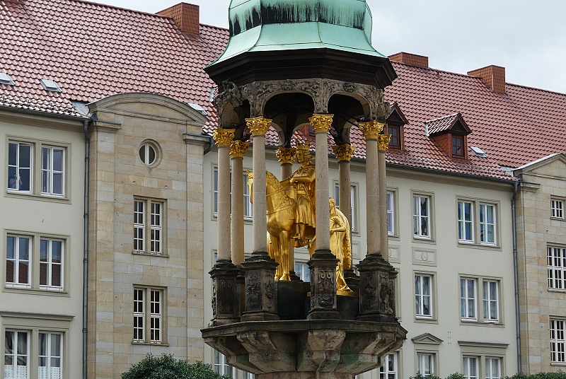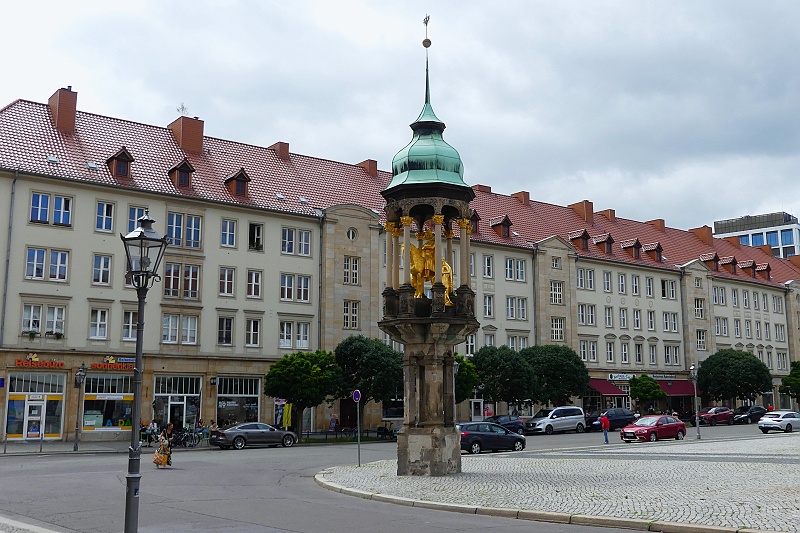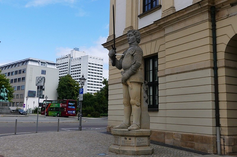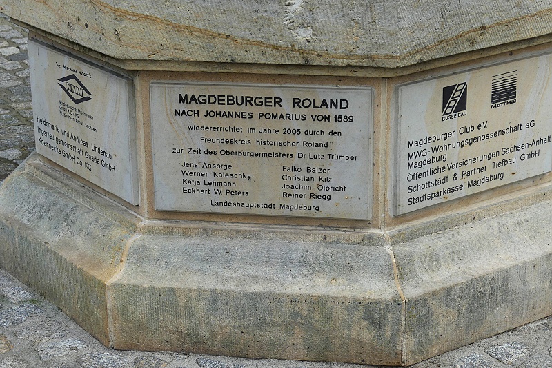 26.07.2025: Rolandsfiguren stammen aus dem Mittelalter und symbolisierten die städtischen Freiheiten und die Unabhängigkeit der Stadt. Schon 1419 muss es eine Roland Figur in Magdeburg gegeben haben. Es gibt schriftliche Erwähnungen, in denen von einer Aufstellung eines neuen Rolands berichtet wird. Diese Figur zerstörte man im Dreissigjährigen Krieg. An dem Standort befindet sich heute eine Platte im Boden mit der Aufschrift Roland 1727. Fast 2 Jahrhunderte hatte Magdeburg keine Rolandsfigur. Erst im Ersten Weltkrieg schuf Rudolf Bosselt eine hölzerne Figur, den Nagelroland. Hier sollten Nägel Spenden symbolisieren, die für Familien von gefallenen Soldaten gedacht waren. Man entschied, die Figur lieber zu erhalten und verzichtete auf das Einschlagen der Nägel. Nachdem die Figur einige Jahre im Museum gestanden hatte, stellte man sie 1933 wieder vor dem Rathaus auf. In den Nachkriegszeiten wurde der Roland anscheinend zu Brennholz verarbeitet, er war auf einmal verschwunden. Nach der politischen Wende gab es Bestrebungen einen neuen Roland aufzustellen. Die Bildhauerin Martina Seffers schuf den heutigen Roland nach einer alten Abbildung. Seit 2005 steht der Magdeburger Roland nun wieder vor dem Rathaus: