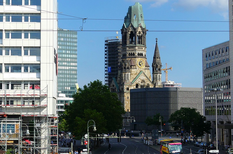 27.07.2025: Die Kaiser-Wilhelm-Gedächtniskirche im Zentrum der City-West am Breitscheidplatz gehört zu den bekanntesten Wahrzeichen und Sehenswürdigkeiten Berlins. Am auffälligsten ist die Turmruine, die in den Himmel ragt. Sie wurde während des Zweiten Weltkrieges 1943 beschädigt und ist heute ein Mahnmal gegen Krieg und Zerstörung. Die Kaier-Wilhelm-Gedächniskirche steht mitten auf dem Breitscheidplatz im westlichen Zentrum Berlins. Die viel besuchte Sehenswürdigkeit der Stadt befindet sich in guter Nachbarschaft zu weiteren Berliner Attraktionen, nicht weit entfernt liegen der Berliner Zoo, der Kurfürstendamm und das KaDeWe. Schon von Weitem fällt die zerstörte Turmspitze der Kirche ins Auge. Sie wurde nach ihrer Zerstörung während des Zweiten Weltkrieges 1943 zwar mehrfach restauriert, aber absichtlich nicht wieder aufgebaut. Sie soll als Mahnmal gegen Krieg und Zerstörung dienen. Im November 1943 wurde die Kaiser-Wilhelm-Kirche bei einem Bombenangriff weitgehend zerstört. In den Nachkriegsjahren wurde die Kirchenruine zum Symbol des aus Ruinen auferstandenen Berlin. Im März 1957 gewann der Architekt Egon Eiermann einen ausgeschrieben Wettbewerb mit seinem Entwurf, der den vollständigen Abriss der Ruine vorschlug und einen kompletten Neubau vorsah. Die Frage nach dem Verbleib der Ruine führte zu einer ernsten öffentlichen Debatte und endete mit einem Kompromiss. Der rund 68 Meter hohe Turmcorpus blieb als Mahnmal gegen den Krieg erhalten und wurde durch ein vierteiliges Bauensemble ergänzt. Dazu zählen das achteckige Kirchenschiff, der sechseckige Glockenturm, die viereckige Kapelle und das Foyer. Nach fast vierjähriger Bauzeit konnte die Kirche am 17. Dezember 1961 eingeweiht werden. Die Berliner fanden für die beiden modernen Gebäude schnell die durchaus passenden Bezeichnungen Lippenstift und Puderdose:
