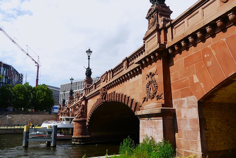27.07.2025: Die Moltkebrücke zwischen der Willy-Brandt-Strasse und Alt-Moabit verbindet das Regierungs- und Parlamentsviertel am Platz der Republik mit dem Moabiter Werder und dem Berliner Hauptbahnhof. An dieser Stelle bestand seit 1851 eine einfache Holzbrücke, die 1864-65 durch eine schmiedeeiserne Bogenbrücke ersetzt wurde. Die heutige steinerne Brücke liess die Stadt Berlin 1888-91 unter der künstlerischen Leitung von Otto Stahn erbauen. Das prachtvolle Brückenbauwerk, benannt nach Helmuth von Moltke, dem Chef des Generalstabs der preussischen Armee, ist ausserordentlich reich geschmückt. Die Bildwerke, Skulpturen und Kandelaber stammen von bedeutenden Bildhauern der wilhelminischen Ära. In den letzten Tagen des Zweiten Weltkriegs wurde die Moltkebrücke hart umkämpft, als die sowjetische Armee von Moabit her ihren verlustreichen Angriff auf den Reichstag begann. Die kriegsbeschädigte Moltkebrücke konnte bereits 1947 wieder hergestellt werden. Der Bildschmuck wurde 1983-86 umfassend restauriert und ergänzt:
