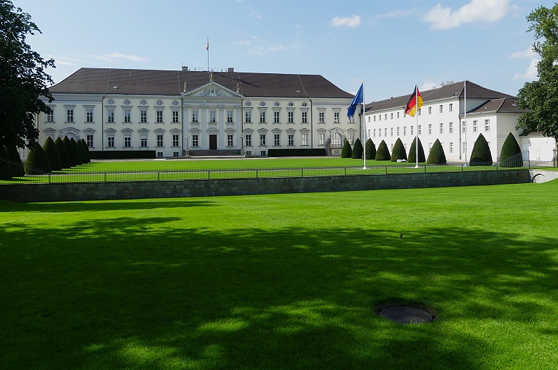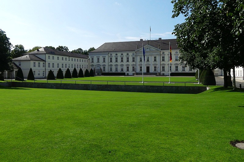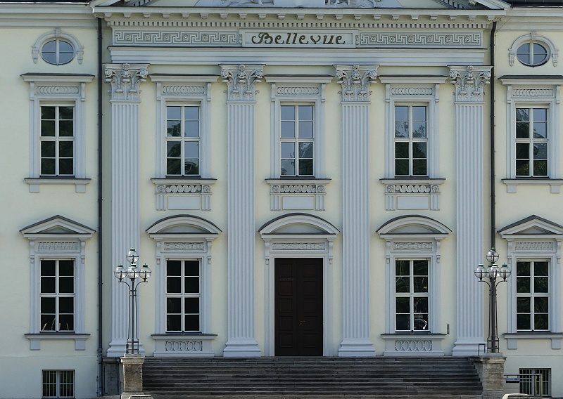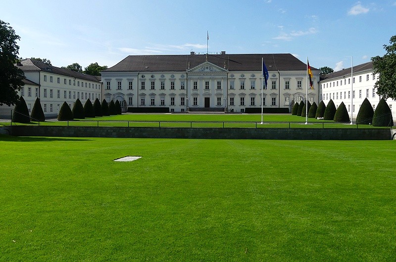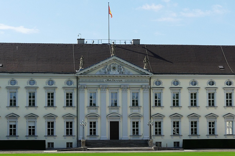 27.07.2025: Das Schloss im neoklassizistischen Baustil steht direkt am Spreeufer im nördlichen Teil des Tiergartens und stellt offiziell die Residenz des jeweils amtierenden deutschen Bundespräsidenten dar. Die zweigeschossige Dreiflügelanlage Schloss Bellevue wurde 1786 als private Residenz für Ferdinand von Preussen, dem jüngsten Bruder von Friedrich dem Grossen, nach den Plänen des Architekten Philipp Daniel Boumann gebaut. Über die Jahrhunderte wurde das Schloss Bellevue vom Hof des letzten deutschen Kaisers Wilhelm II. (1888-1918) genutzt und 1939 zum Gasthaus der Reichsregierung umfunktioniert. Das heutige Gebäude ist die rekonstruierte Version von 1959. Lediglich der vom Architekten Carl Gotthardt Langhans entworfene Ballsaal im Obergeschoss des Schlosses ist in seinem Original erhalten geblieben. Weitere Büroräume des Bundespräsidenten befinden sich in dem neuen Gebäude südlich des Schlosses, dem Bundespräsidialamt – ein Bauwerk, das mit seiner polierten schwarzen Granitfassade und dem grossen Glasdach optisch in starkem Kontrast zum Schloss steht: