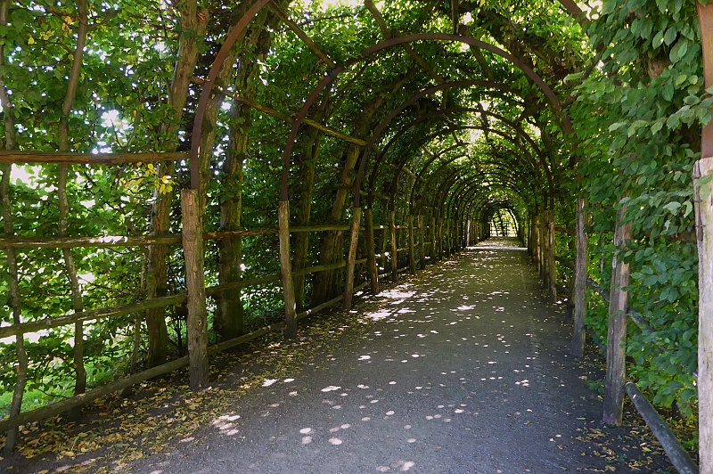 Die bewusste Verbindung der Gebäude des Residenzensembles mit der Seenlandschaft und damit die romantische Inszenierung der Wechselwirkung zwischen Natur und menschlicher Schöpfungskraft spielt bei der im 19. Jahrhundert geschaffenen Kulturlandschaft eine grosse Rolle. So ist es nicht weiter verwunderlich, dass auch der Burggarten mit seinen verschiedenen Gartenpartien als ein Meisterwerk dieses harmonischen Zusammenspiels gilt. Geplant von Peter Joseph Lenné wurde er von dem Hofgärtner Theodor Klett umgesetzt. Im Zentrum des Burggartens unter der Terrasse des Hauptturms befindet sich die Orangerie, direkt neben ihr eine künstlich angelegte Felsengrotte. Die fortschrittliche Verwendung von damals hochmodernem Gusseisen beim Bau der Orangerie ist ein Zeitzeugnis der Industriellen Revolution. Die Orangerie ist ihrer Funktion als Schutz für Pflanzen in den Wintermonaten treu geblieben. In den Sommermonaten kann man hier in einem Café den Blick auf das Schloss und über den See geniessen: