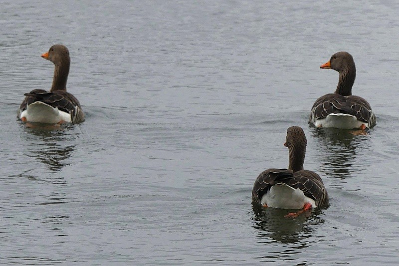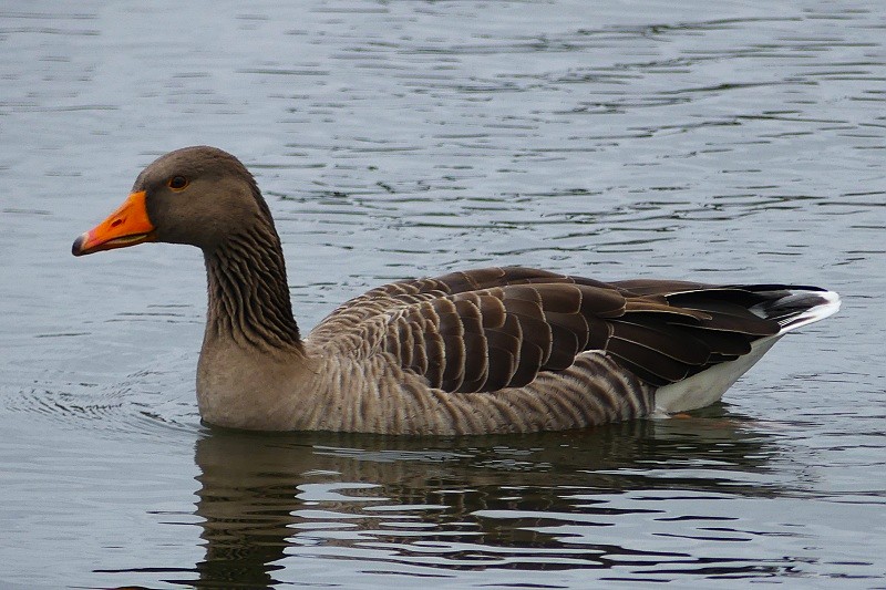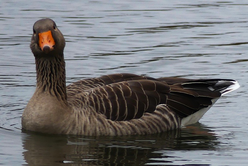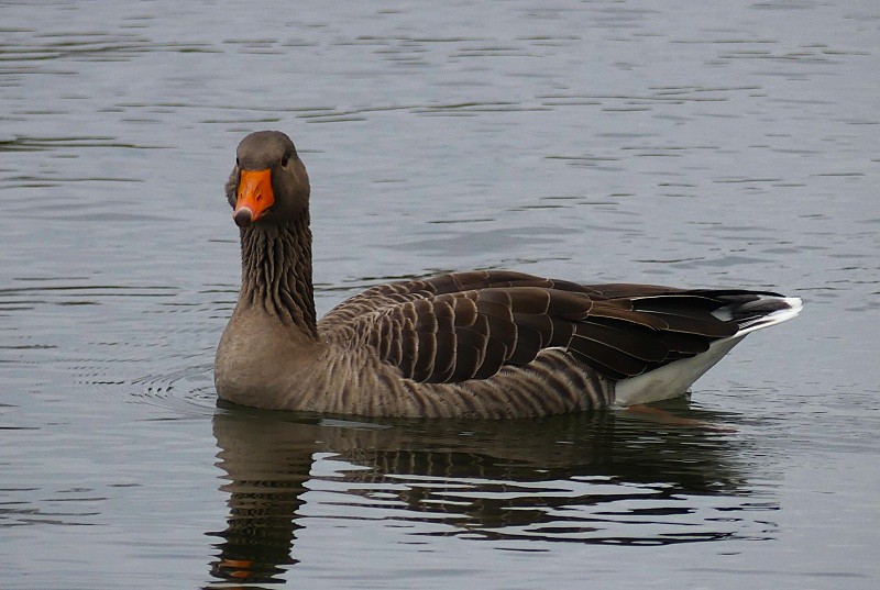 Innerhalb der Gattung der grauen Gänse besitzt die Graugans (Anser anser) das hellste Gefieder. Charakteristisch ist vor allem der helle Kopf mit dem kräftigen, keilförmigen Schnabel. Wenn sie nicht gerade ruhen oder auf dem Wasser schwimmen ist das beste Erkennungsmerkmal die Farbe der Füsse, diese sind blass rosa und nicht orange wie bei Bläss- oder Saatgans. Männchen und Weibchen unterscheiden sich äusserlich nicht. Jung- und Altvögel kann man gut an der Farbe der verhornten Schnabelspitze, des sogenannten Nagels, unterscheiden. Jungvögel haben einen dunklen und Altvögel einen weisslichen Nagel. Graugänse sehen und hören hervorragend und die Mitglieder einer Familie oder Gruppe stehen ständig über Rufe oder schnatternde Soziallaute miteinander im Kontakt. Ausgewachsene Vögel wiegen 3 bis 4 Kilogramm. Das typische Flugbild einer Gänseschar ist die Keilformation, die aus aerodynamischen Gründen gebildet wird.
