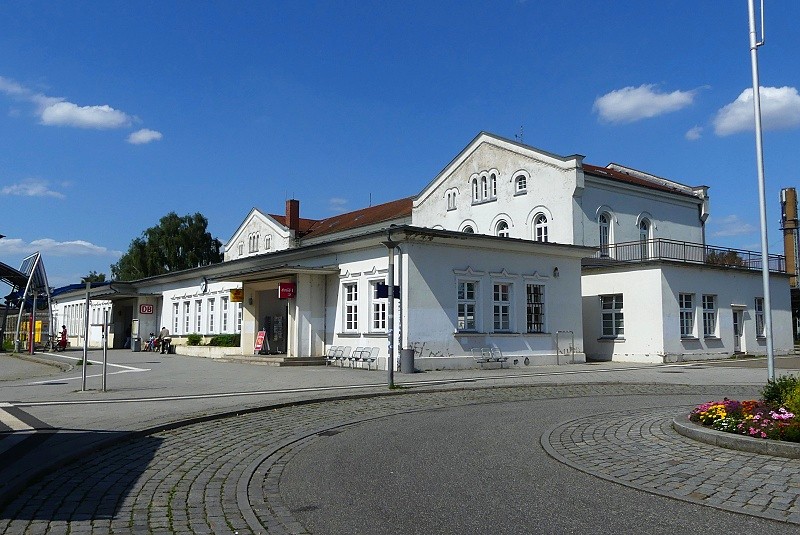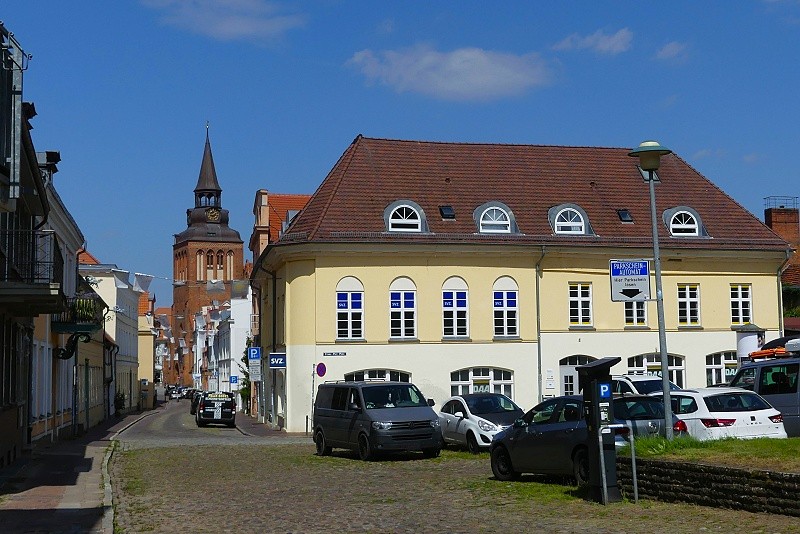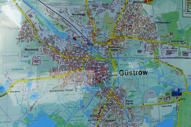 Stadtplan von Güstrow auf dem Bahnhofsvorplatz: