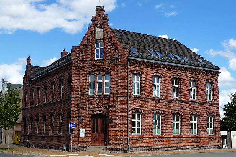 21.08.2025: Das zweigeschossige verklinkerte historisierende Gebäude in L-Form von 1885 mit einem Walmdach wurde als Kaiserliches Postamt im Stil der Gründerzeit für das Post- und Fernmeldewesen gebaut. Prägend ist an der Ecke der dreigeschossige reich verzierte Risalit als Stufengiebel mit einer Uhr und dem Portal mit zwei Fialen. Die Deutsche Post AG verkaufte das Haus 2004 und es wurde im Rahmen der Städtebauförderung 2010/11 nach Plänen von Roman Schumacher für Lars Bennke saniert und zu einem Wohn- und Geschäftshaus umgebaut: