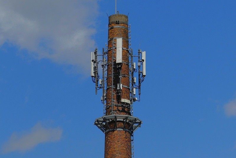 Ehemaliger Schornstein mit Mobilfunkanlage: