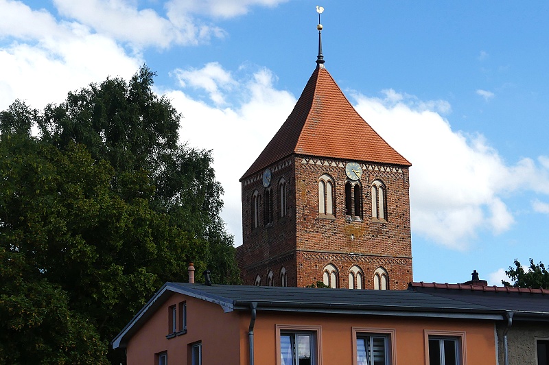 21.08.2025: Die St. Johanniskirche zu Malchin ist ein Backsteinbau im Stil der Norddeutschen Backsteingotik. Nach einem Brand wurde sie als dreischiffige Basilika 1397 neu erbaut. Die romanischen Mauern des 1249 geweihten Vorgängerbaus sind in der Marienkapelle noch heute gut sichtbar, so dass hier Baugeschichte in besonderer Weise nachvollziehbar ist. Die Marienkapelle steht anstelle des möglicherweise geplanten Südturms. Im Westen ist nämlich der Turm nördlich versetzt, was auf eine ursprünglich geplante Doppelturmanlage hinweist. Die Baugeschichte des Turmes und der Kapelle ist jedoch unklar. Als die ursprünglich gotische Turmspitze herunterfiel, wurde sie 1648 durch eine geschweifte barocke Turmhaube ersetzt. Die Seitenschiffe stammen aus dem Jahre 1870. 1897 hat man das Turmdach noch einmal verändert: