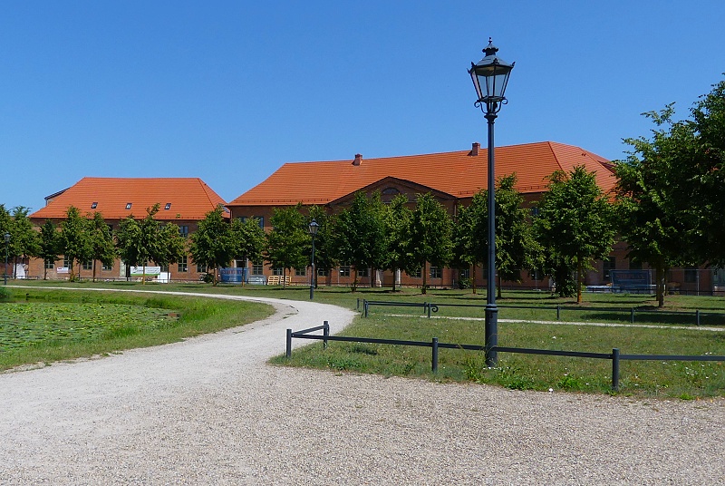 Auf den rechteckigen Schlossplatz folgt der ovale Bassinplatz, dessen Mittelpunkt ein grosses Wasserbecken bildet. Die angrenzenden Häuserzeilen und die östlichen und westlichen Strassenzüge folgen dem Schwung des Platzverlaufs, die Gebäude wurden unter Busch als Stadthäuser für Hofbeamte errichtet. Der östliche Baukomplex, das mehrflügelige Prinzenpalais, diente der herzoglichen Familie als zusätzlicher Wohnraum: