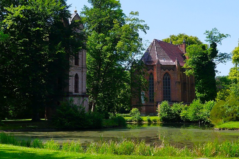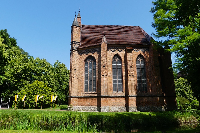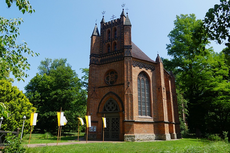 21.06.2025: Die römisch-katholische Kirche St. Helena und St. Andreas wurde 1803 von Friedrich Franz I. als erster neugotischer Kirchenbau und einer der ältesten römisch-katholischen Kirchen in Mecklenburg überhaupt in Auftrag gegeben. St. Helena und Andreas liegt im Schlosspark auf einer künstlich angelegten Insel, während der Glockenturm jenseits des Grabens auf Festland errichtet wurde. Schon von aussen ein Highlight ist die Kirchenfront, sie erinnert bei näherem Hinsehen stark an ein Stadttor aus damaligen Zeiten, während das gesamte restliche Gebäude mit seiner sich verjüngenden Form einem Schiff ähnelt. Auch innen zeigt sich St. Helena und Andreas von besonderer Schönheit. Nicht nur die verschiedenen Relieffiguren, sondern vielmehr echte Handwerkskunst aus dem 15. Jahrhundert sind hier besonders beeindruckend. Der Hochalter ist eine ursprüngliche Schnitzarbeit aus dem Doberaner Münster, während die Chorfenster Apostelbilder zeigen, die im 15. Jahrhundert für den 1805 abgerissenen Hamburger Dom gemalt worden sind. St. Helena und Andreas trägt also einen guten Beitrag dazu bei, dass alte Kunst weiterleben und bewundert werden kann: