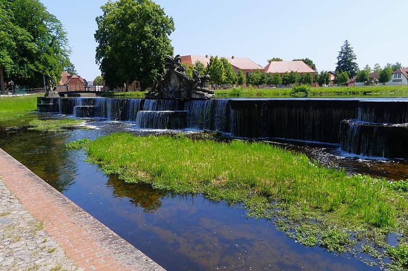 Den grosszügig gestalteten Schlossplatz dominieren die 1780 – 1785 vom böhmischen Bildhauer Rudolf Kaplunger geschaffenen Kaskaden des Bassins. Mit diesen Kaskaden aus Sandstein wurde die ursprünglich hölzerne Kaskade ersetzt. Der figürliche Schmuck stellt die Flussgötter der Rögnitz und der Stör dar: