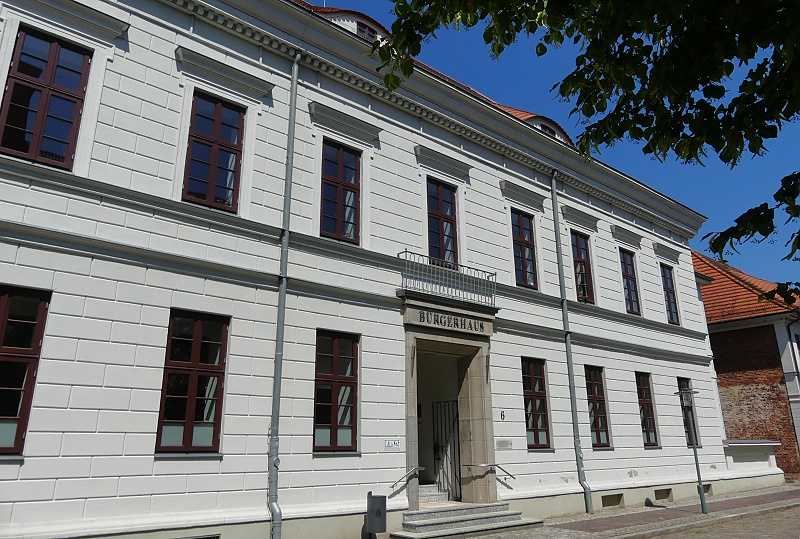 12.06.2025: Das Gebäude wurde ca. 1830 in klassizistischen Formen als teilunterkellertes zweigeschossiges, neunachsiges Gebäude mit Krüppelwalmdach errichtet. Die ursprüngliche Bestimmung dürfte die Nutzung des Gebäudes als Amtsgericht und Amtsverwaltung gewesen sein. Es wurde bis 2001 als Schule genutzt und stand dann leer. Im Jahr 2006 wurde beschlossen, das Gebäude zum Verwaltungszentrum der Stadt Boizenburg umzubauen: