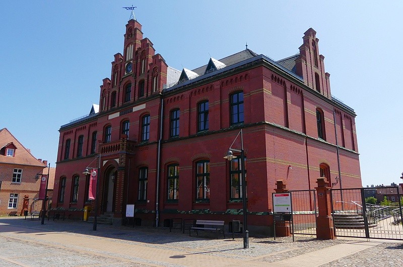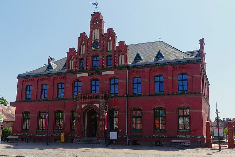 21.06.2025: Das historische Backsteingebäude wurde um 1890 erbaut und diente bis etwa 1898 als Kaiserliches Postamt. Von 1904 bis 1954 wurde es als Schule genutzt. Es handelt sich um einen zweigeschossigen Backsteinbau mit dekorativen Elementen aus farbigen Ziegeln und Schmuckmedaillons. Neben der Ludwigslust-Information sind in dem Gebäude auch das Fundbüro und andere städtische Dienste untergebracht: