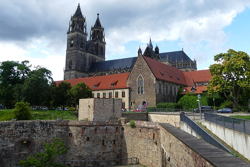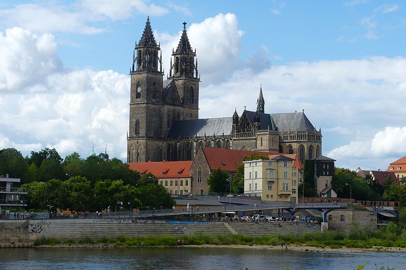 29.07.2025: Die Geschichte des Doms zu Magdeburg beginnt, wie so viele andere Geschichten in der Stadt, mit Otto I. dem Grossen. Nachdem er seine Frau 946 im Mageburger Kloster St. Mauritius bestattet hatte, wählte er die Stadt auch als seine zukünftige Begräbnisstätte aus. Um 950 liess er in der Stadt einen Kirchenneubau errichten und schaffte zahlreiche Kostbarkeiten in die Stadt. Wie das Gebäude genau aussah, ist nicht hundertprozentig belegt, man vermutet aber, es war eine dreischiffige, kreuzförmige Basilika. In dieser Kirche wurde Otto dann auch beigesetzt. Nachdem 1207 ein Feuer Magdeburg und auch die Basilika und die benachbarte Kirche grossflächig zerstört hatte, liess Albrecht I. noch im selben Jahr den Grundstein für den Neubau legen. Teile des Vorgängerbaus wurden beim Bau wiederverwendet. Das gesamte Kirchengebäude ist auf die Grabstätte Otto des Grossen ausgerichtet und weist zu seinem Vorgängerbau eine veränderte Bauachse auf. Das Grab von Editha, Ottos erster Frau fand auch einen Platz in dem Magdeburger Dom. Mit der Zeit wurde das Geld für den Bau des Doms knapp und in der zweiten Hälfte des 13.Jahrhunderts kam es zu einer mehrjährigen Unterbrechung der Bauarbeiten. Es folgten noch viele Jahre Bauzeit und 1520 war der Dom schliesslich fertig gestellt. Während der Reformation zählte Magdeburg zu den Hochburgen des Protestantismus und Erzbischof Albrecht von Brandenburg betrieb, bis zu seinem Tod, einen regen Handel mit Ablassbriefen. Nach seinem Tod 1545 schloss der Dom für 20 Jahre seine Türen und öffnete anschliessend als protestantisches Gotteshaus. Nach dem Dreissigjährigen Krieg, dem in Magdeburg gut zwei Drittel der Bevölkerung und fast die gesamte Stadt den Flammen zum Opfer fielen, liess General Tilly den Dom reinigen und feierte dort einen katholischen Gottesdienst. Von nun an war der Erzstift Magdeburg wieder katholisch. Im Zweiten Weltkrieg wurde der Dom und seine Inneneinrichtung sehr stark beschädigt. Im September 1955 konnte man die Kirche nach Restaurierungsarbeiten dann wieder eröffnen. Seit dieser Zeit ist der Magdeburger Dom wieder für Gottesdienste und Besucher geöffnet und zählt zu den meist besuchten Sehenswürdigkeiten in Magdeburg: