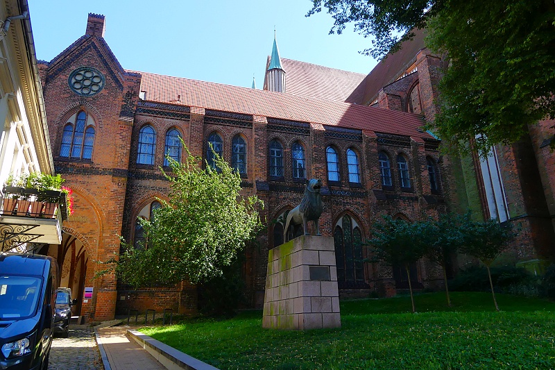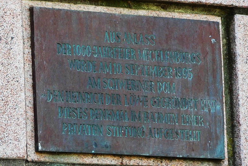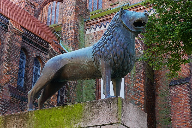 Löwe vor dem Dom – das Denkmal wurde 1995 anlässlich der 1000-Jahr-Feier Mecklenburgs errichtet in Anlehnung an Heinrich den Löwen, der den Dom gründete. Finanziert wurde die Skulptur von einer privaten Stiftung: