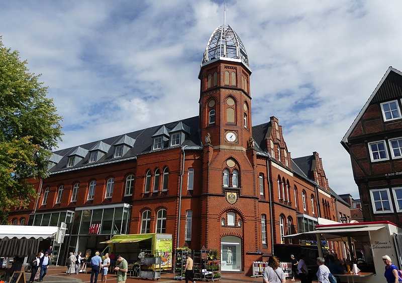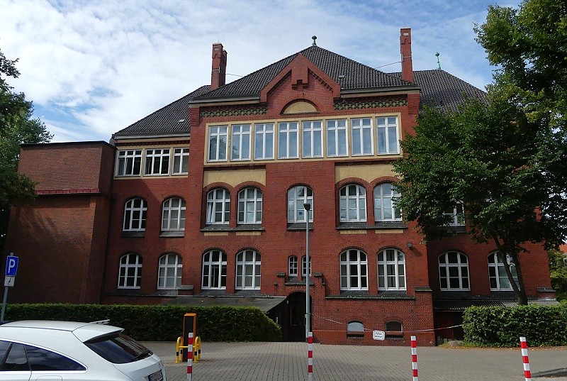 21.08.2025: Das zweigeschossige verklinkerte historisierende Gebäude in L-Form von 1885 mit einem Walmdach wurde als Kaiserliches Postamt im Stil der Gründerzeit für das Post- und Fernmeldewesen gebaut. Prägend ist an der Ecke der dreigeschossige reich verzierte Risalit als Stufengiebel mit einer Uhr und dem Portal mit zwei Fialen. Die Deutsche Post AG verkaufte das Haus 2004 und es wurde im Rahmen der Städtebauförderung 2010/11 nach Plänen von Roman Schumacher für Lars Bennke saniert und zu einem Wohn- und Geschäftshaus umgebaut: