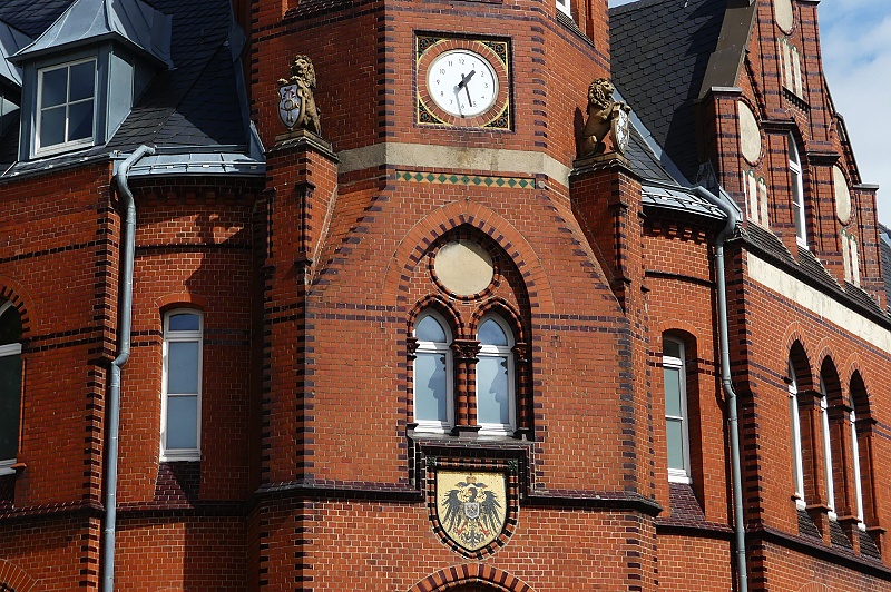 21.08.2025: Das zweigeschossige historisierende verklinkerte Gebäude wurde 1886 als Kaiserliches Postamt der I. Klasse mit Telegrafenstation vom Reichspostamt im Stil der Gründerzeit gebaut. Markant sind die dreigeschossige Eckausbildung sowie die zwei dreigeschossigen Giebelriesalite. Um 1900 führte Postdirektor Schult das Amt, ihm folgten Joerges und Schmühle. 1922 war es ein Postamt II. Klasse, das Oberpostmeister Dähling leitete. Von 1899 bis 1930 wurde die Telefonvermittlung noch manuell betrieben: