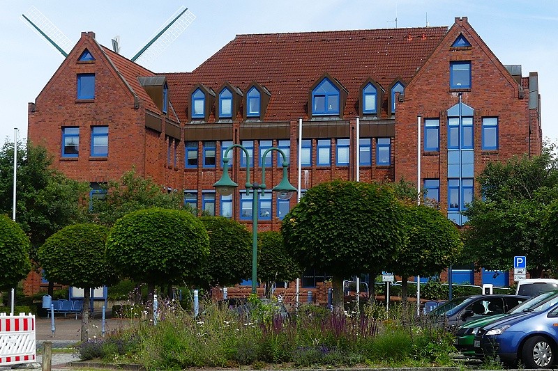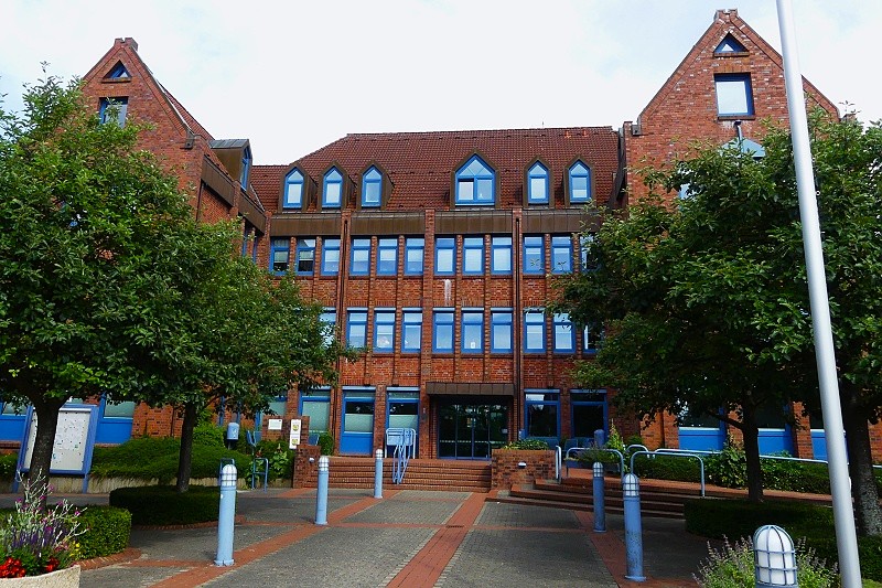 11.07.2025: Das Verwaltungsgebäude dient der Gemeinde Gettorf als Rathaus und dem Amt Dänischer Wohld, das auch die Nachbargemeinden Felm, Lindau, Neudorf-Bornstein, Neuwittenbek, Osdorf, Schinkel und Tüttendorf verwaltet, als Dienstgebäude: