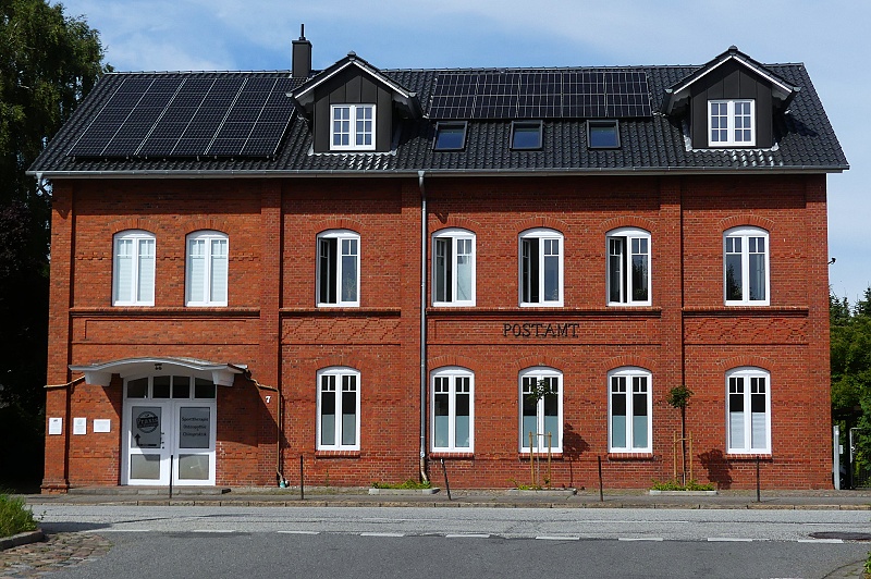 11.07.2025: Die ehemalige Post befand sich in der Kieler Chaussee 7 in Nachbarschaft zum Bahnhof. Heute befindet sich eine Praxis für Osteopathie in dem Gebäude: