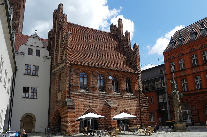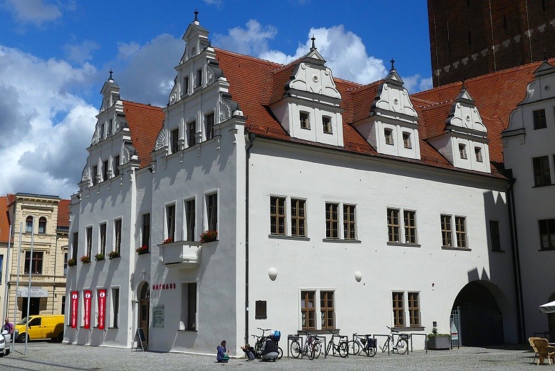 26.07.2025: Die Geschichte des Alten Rathauses auf dem Alten Markt reicht zurück bis ins 12./ 13. Jahrhundert. Die ältesten Teile des Rathauses befinden sich im Bereich des heutigen Ratskellers. Der lange Saal war Lager- und Verkaufshalle der Kürschnerinnung. Nach der Zerstörung im Dreissigjährigen Krieg wurde das Rathaus als zweigeschossiger Sandsteinbau im Stil der italienisch-niederländischen Renaissance nach Entwürfen des Ingenieurhauptmanns Heinrich Schmutze wieder aufgebaut. Zahlreiche Um- und Ausbauten fanden im 19. Jahrhundert statt. Die zweite Zerstörung folgte im Januar 1945. Das Rathaus wurde – wie große Teile der Stadt während eines Luftangriffs – in Schutt und Asche gelegt. In den 1950er Jahren begann der originalgetreue Wiederaufbau des Gebäudes, der 1979 abgeschlossen wurde:
