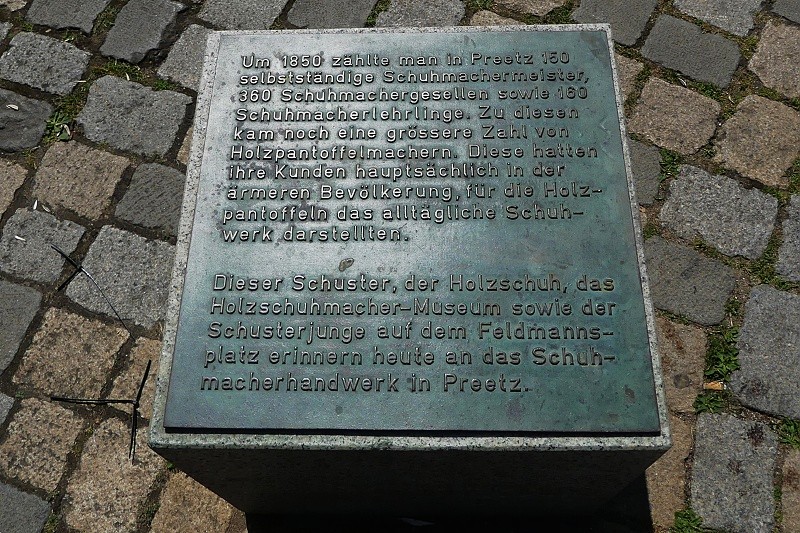 20.06.2025: Dieses Projekt greift das alte Schuhmacherhandwerk in Preetz auf, das die Stadt als Schusterstadt weit über die Grenzen des Landes hinaus bekannt machte. Noch 1850 arbeiteten in Preetz 160 selbständige Schuhmachermeister mit vielen Gesellen. Die ausgezeichnete Handwerksarbeit führte dazu, dass die Holzschuhe, bekannt als Preetzer Holzschuhe, den Namen der Stadt weit über die Grenzen hinaustrugen. 2007 beteiligte sich die Stadt Preetz an dem Wettbewerb „entente florale“. Ralf Reikat schlug vor, als sichtbare Verbeugung vor dem Schusterhandwerk den grössten Holzpantoffel der Welt zu bauen. Geeignet für die Herstellung traditioneller Holzschuhe sind Weichhölzer, beispielsweise Pappelholz. Doch anders als die traditionellen Holzschuhe, die aus einem einzigen Holzblock gefertigt werden, wird der Preetzer Holzschuh aus Holz und Leder hergestellt. So sollte auch der Riesenpantoffel aussehen. Doch woher bekommt man die Lauffläche für einen derart riesigen Holzpantoffel? Es traf sich gut, dass die Stadt Preetz eine umsturzgefährdete Pappel fällen musste und den Stamm für dieses Projekt kostenlos zur Verfügung stellte. Der Holzbildhauer Hinrich Schümann aus Ellerau bei Pinneberg formte aus dem dicken Holzstamm die Sohle und den Leisten. Der Holzschuhmacher Lorenz Hamann aus Preetz spendete dazu zwei Kuhfelle und bearbeitete diese gemeinsam mit dem Schuhmachermeister Richard Schwarz. Den letzten Schliff erhielt der Holzpantoffel anlässlich des Schusterfestes 2008, als er mit einem kleinen Kran an den endgültigen Standort verbracht wurde. Der Eintrag in das Guinessbuch der Rekorde wurde leider vereitelt, weil der Schuh zwei unterschiedliche Materialien, also Holz und Leder, aufwies. Darum heißt er heute „Der wahrscheinlich größte Holzpantoffel der Welt“. Die Unterkunft, also das Holzgestell mit Reetdach, stiftete der Dachdecker Bernd Kodel, die farbenfrohe Blumenumrandung wurde von der Förde Sparkasse gespendet und die Einfassung stiftete der Metallbauer Thoralf Volkens. Nach der öffentlichen Vermessung hat der Förderverein Preetz und Umgebung e.V den Pantoffel der Stadt Preetz geschenkt: