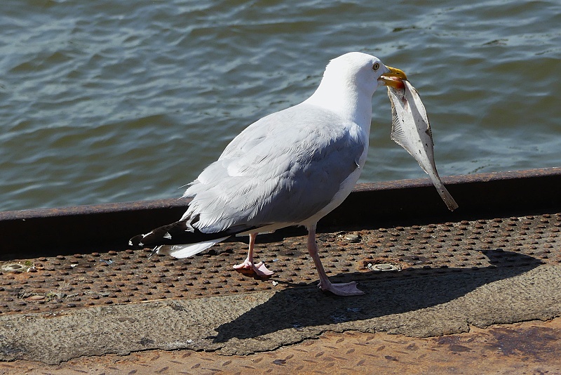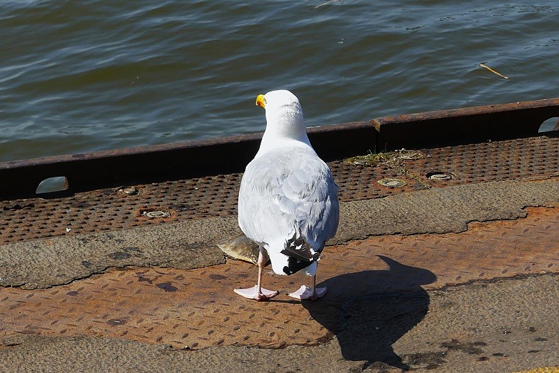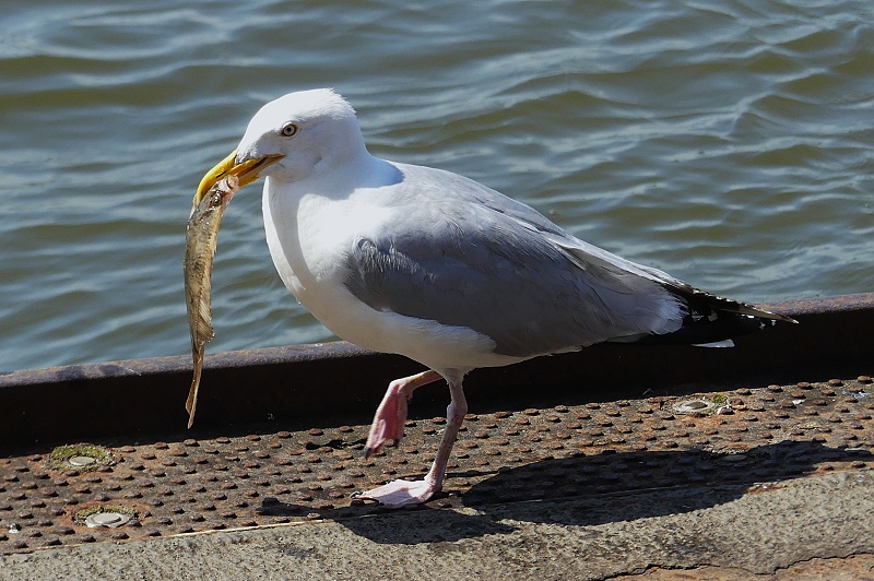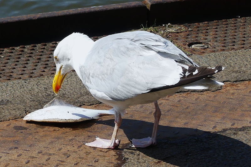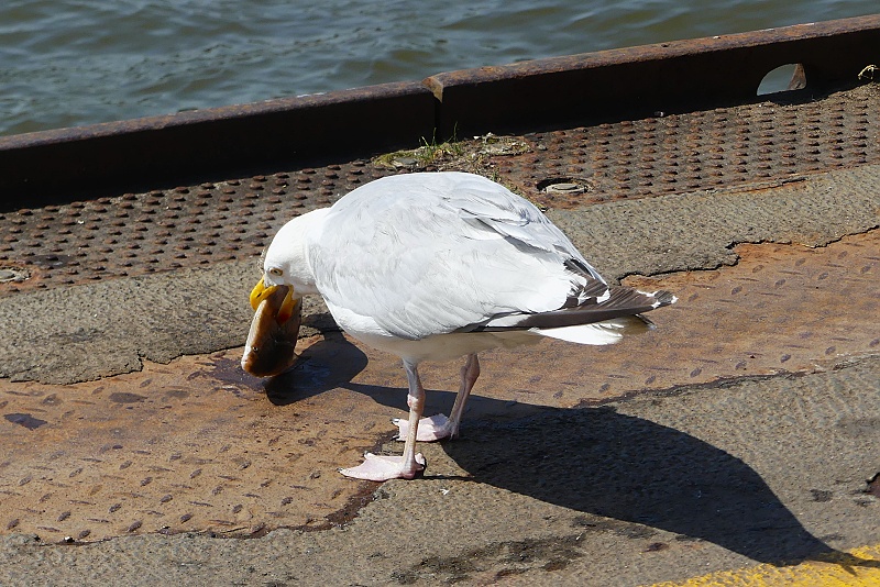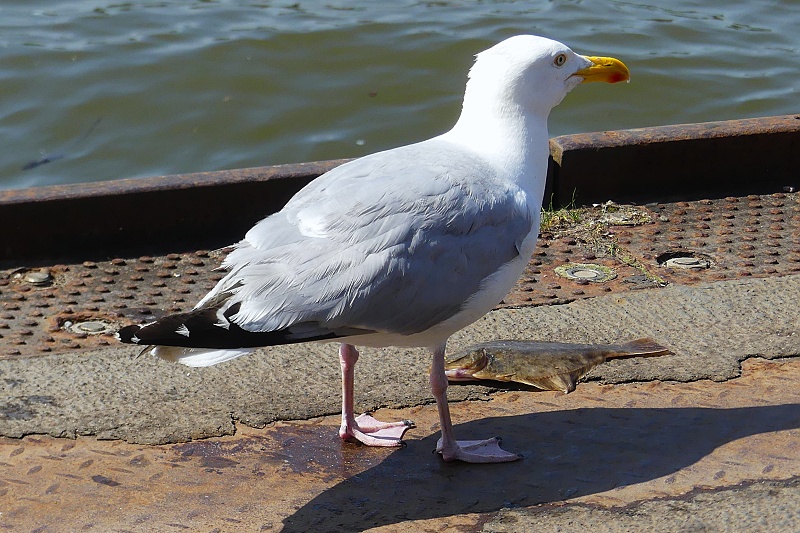 19.08.2020: Dieses kleine „Model“ auf einem Poller an den Landungsbrücken in St. Pauli ist meines Erachtens eine Silbermöwe (Larus argentatus) aus der Gattung Larus: