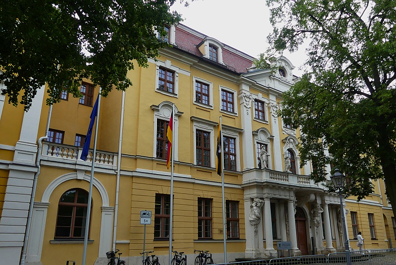 Bankgebäude Bahnhofstrasse 11 – Das Haus entstand als Geschäftshaus der Mitteldeutschen Bank in der Zeit um das Jahr 1910 im Stil des Neobarock. Die Gestaltung erinnert an barocke römische Stadtpaläste: