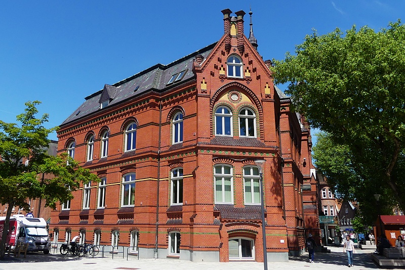 Haus der Herzog-Friedrich-Loge von 1897 – zweigeschossiger Backsteinbau mit sogenanntem Kieler Dach: