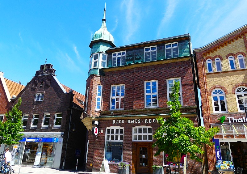 Ehemalige Rathsapotheke – Das alte Gebäude der Raths-Apotheke in Lauenburg fügt sich malerisch ein in das Gesamtensemble von Lauenburgs historischer Altstadt. Erst im Frühjahr 1990 wurde die traditionsreiche Raths-Apotheke der Elbestadt Lauenburg geschlossen. Die damalige Besitzerin schenkte die historische Einrichtung dem Altonaer Museum: