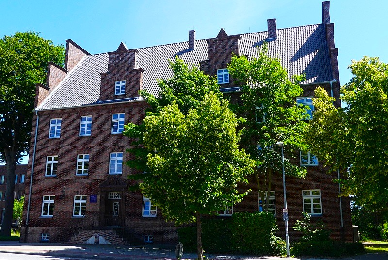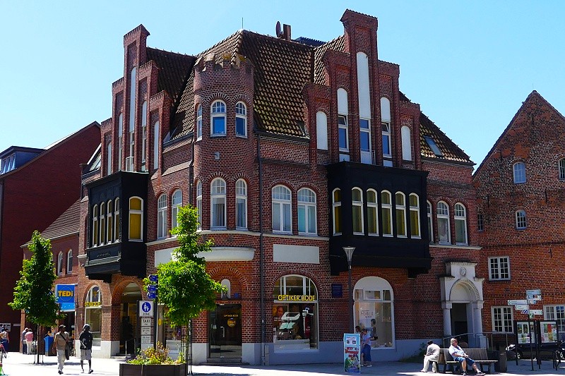 Haus der Herzog-Friedrich-Loge von 1897 – zweigeschossiger Backsteinbau mit sogenanntem Kieler Dach: