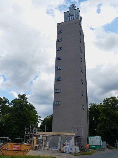 29.07.2025: Der insgesamt 61 Meter hohe Aussichtsturm gilt als eines der bedeutendsten Bauwerke Magdeburgs. Er wurde 1927 unter der künstlerischen Oberleitung von Prof. Albinmüller als Krönung des Gesamtensembles zur Ersten Deutschen Theater-Ausstellung nach den Gedanken des Neuen Bauens errichtet. Besucher können täglich die 252 Stufen des Albinmüller-Turms erklimmen. Aber auch per Fahrstuhl gelangt man bequem auf die Aussichtsplattform, um die Schönheiten der Elbestadt entlang des grossen Stroms aus ungewohntem Blickwinkel zu entdecken. Bei klarem Wetter wird sogar der Brocken sichtbar: